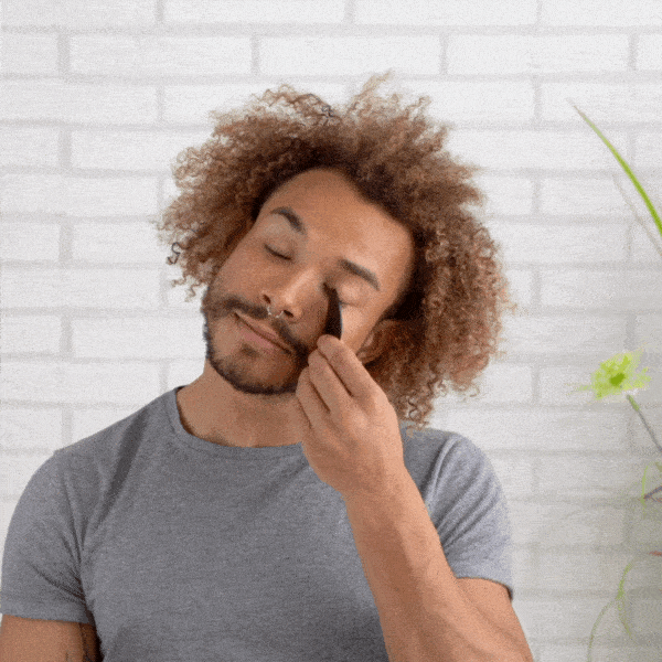 Schritt 3: Nimm nun den Augenroller zur Hand und gleite damit sanft vom inneren Augenwinkel nach außen entlang der Brauen und unter den Augen.